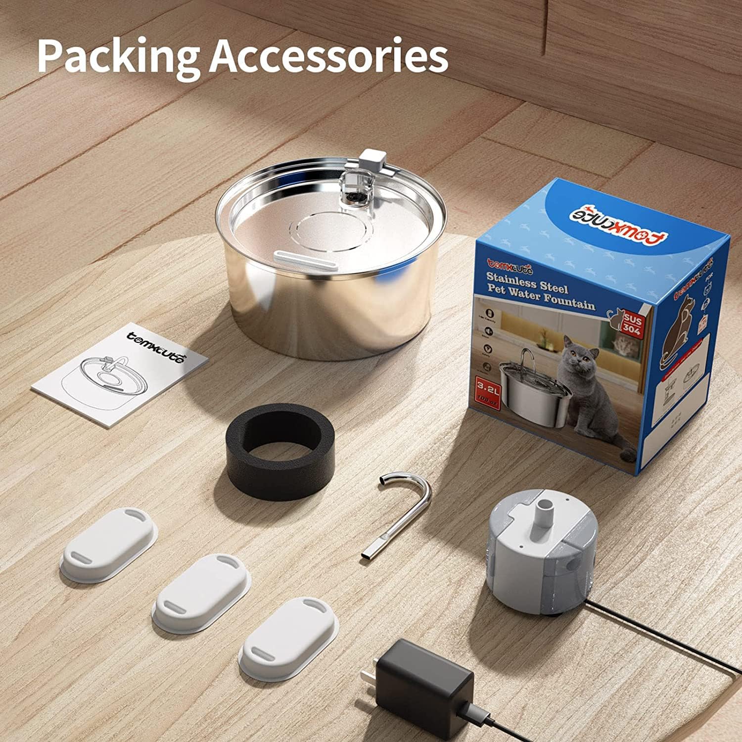 Tomxcute 3.2L/108oz Automatic Stainless Steel Pet Fountain For Cats, Dogs, Multiple Pets