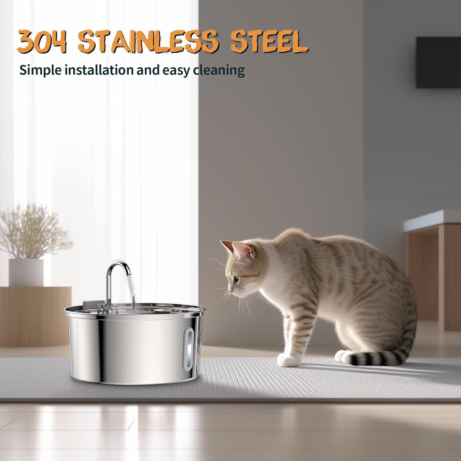 Crafted from top-grade SUS304 stainless steel, our cat water fountain guarantees durability and is 100% BPA-free. Your pet's safety is our priority, and our fountain is designed to withstand everyday use while providing a hygienic drinking experience. Plus, it's dishwasher safe, making cleaning a breeze. Say farewell to stale water and hello to fresh, clean, and healthy hydration for your furry companion.